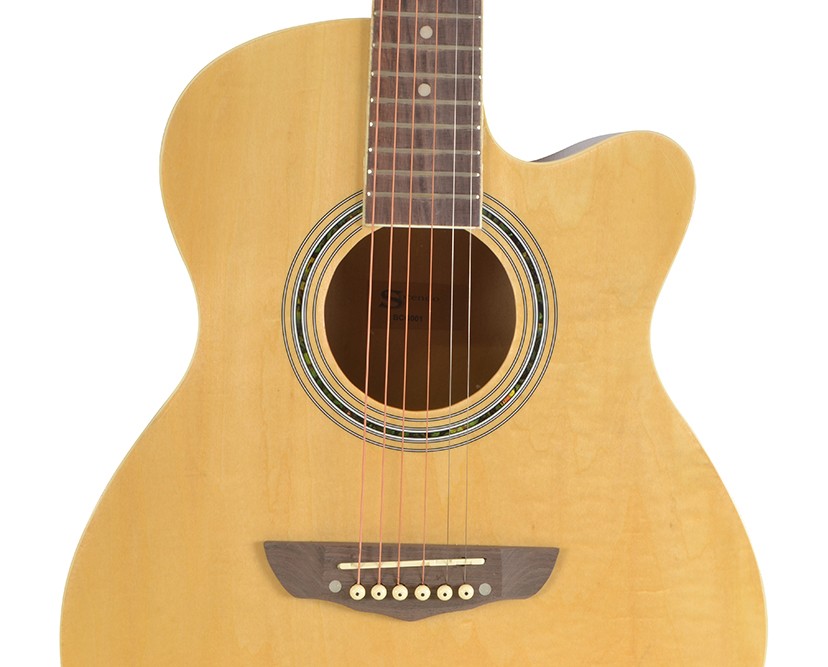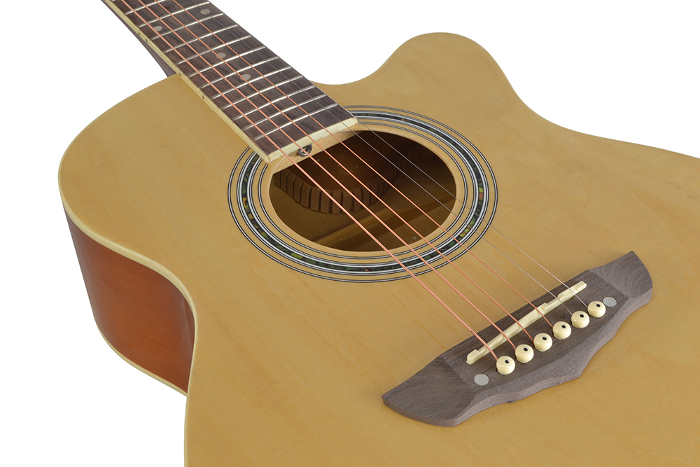 Acoustic Guitar 38" Compact Cutaway Design with Natural Gloss Finish by Sotendo