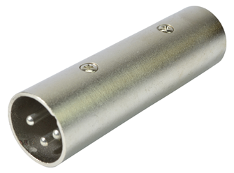 A heavy duty metal plug with a 3 pin male XLR each end. A useful connector to turn 2 XLR leads into one long lead with two male connectors.