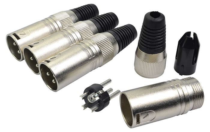 These XLR male connectors can mate with any standard brand of XLR connector or socket.