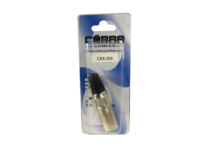 Cobra 5 Pin in-line male XLR connector. A good quality connector with metal body and clamping ring, suitable for types of cable interconnection. The terminals are tinned solder bucket type with a deep recess, making easy to terminate the cable.