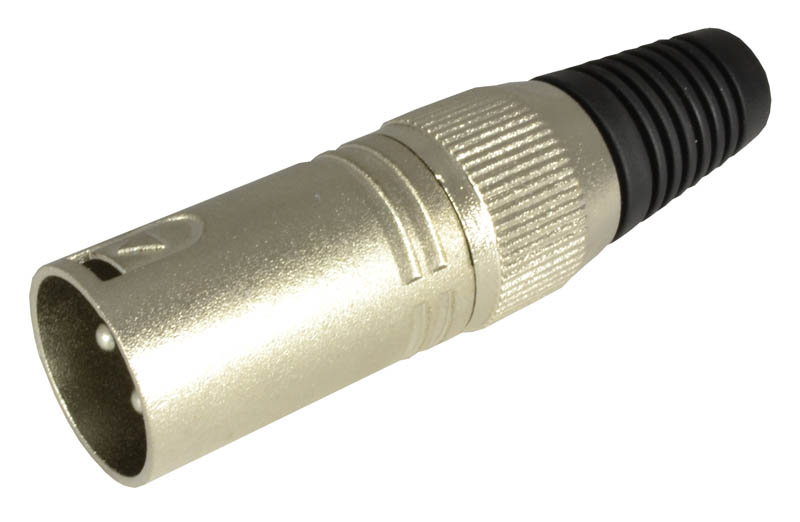 Cobra 3 Pin in-line male XLR connector. A good quality connector with metal body and clamping ring, suitable for types of cable interconnection. The terminals are tinned solder bucket type with a deep recess, making easy to terminate the cable.