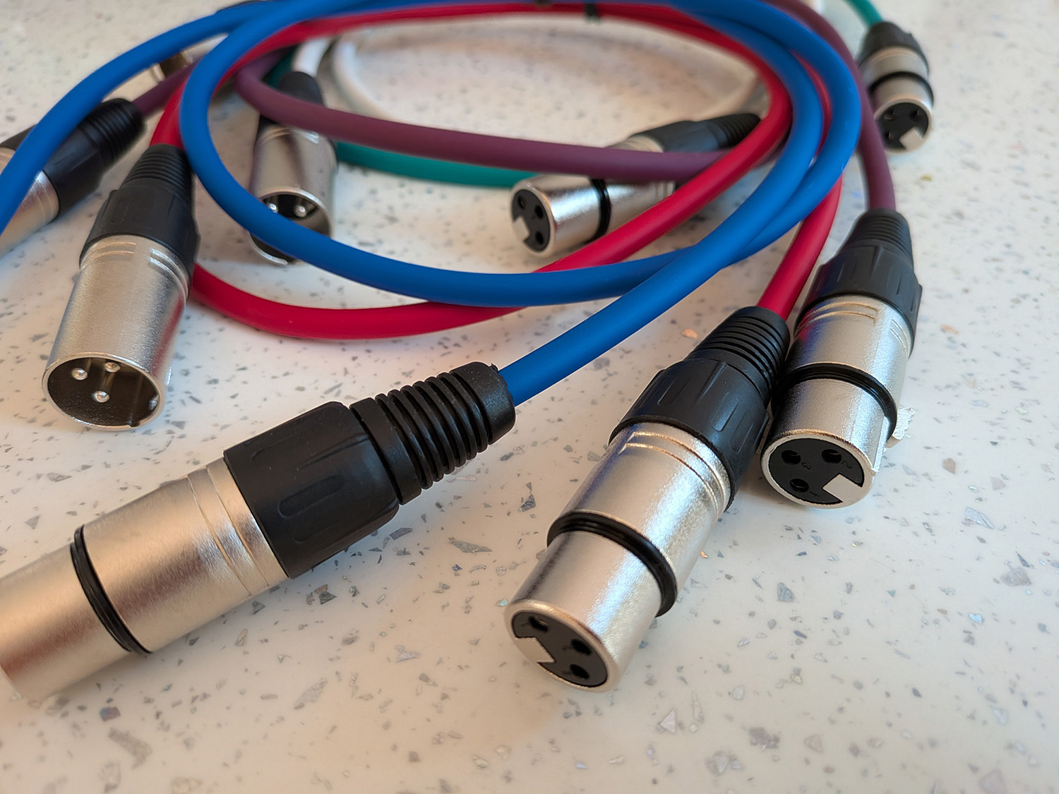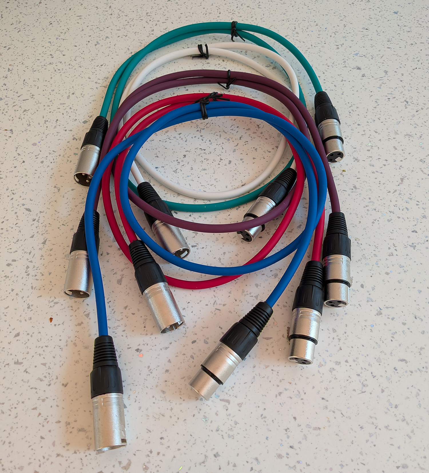 5 x 1Metre XLR Patch Cables One Each: Red Green Blue White Purple