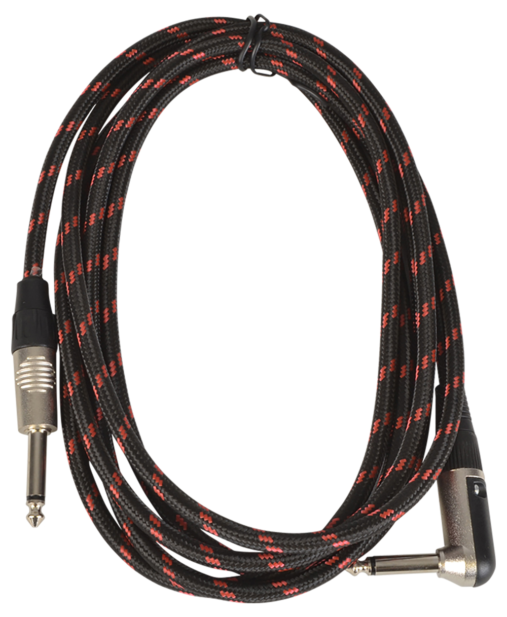 Guitar Lead 6M Braided Straight to Right Angle 1/4" 6.3mm Jack Various Colours