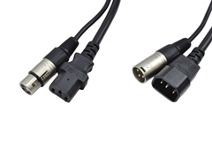 Power and control combined in one cable. For easy daisy chaining of LED effects and projectors. IEC and XLR plugs on both ends. The cables can also be used for combined audio and power feeds.