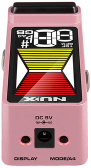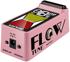 Mini Core style guitar and bass pedal tuner with large HD colour display for easily visible tuning status. The signal throughput can be set to true-bypass (TB) or buffered (BF) where the output is muted during tuning. An additional buffered mode (BFM) keeps the output unmuted during tuning to keep showing tuner status whilst playing live. Three different display modes can be selected, including a strobe simulation. Modes for Guitar, Bass or Chromatic tuning can be selected and holding the same button allows A4 tuning frequency to be set. Overall, an ultra-compact yet rugged pedal tuner with maximum display for stage performances.