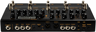 Trident is the flagship integrated effects and amplifier simulation pedal from NU-X, built into a one-piece die-cast aluminium pedal housing to withstand the rigours of the stage and road. Using the new proprietary TSAC-4K physical modelling algorithm, with separate dedicated DSP engines for effects and amp simulation, the Trident employs premium AD/DA conversion hardware for accurate sound reproduction with minimal noise levels. Each of the 27 amplifier models faithfully emulates its real world counterpart with authentic features and functions, such as high/low inputs, cable jumping and toggle switch settings. Add to these 27 cabinet simulations and 4 microphone models and you have a wide palette of classic backline to conjure with. A full compliment of effects including boosters, filters, modulations, delay and reverb are available, with on-the-fly adjustments and foot switching easily from the top-side control panel. Current status and settings are neatly displayed in real-time on the backlit LCD display which is bright and clear for easy viewing on stage. Additional effects can be patched in via the send / return loop, which has serial or parallel modes and can also be used for connecting to an amplifier using the 4-cable method, or as a send-only output using branch mode. Full MIDI implementation is accessed through MIDI in and out for integration with external MIDI and switching gear. For interfacing with a Mac or PC computer, a USB type-C port can be used as a recording interface or for programming the Trident using the free to download Trident™ editing software. Additional connections on the rear panel include an expression pedal input, 3.5mm auxiliary input, 6.3mm headphone output, 2 x XLR outputs and 2 x 6.3mm outputs to support the many various wiring configurations. Overall, Trident is the complete war machine to launch your sonic attack with.