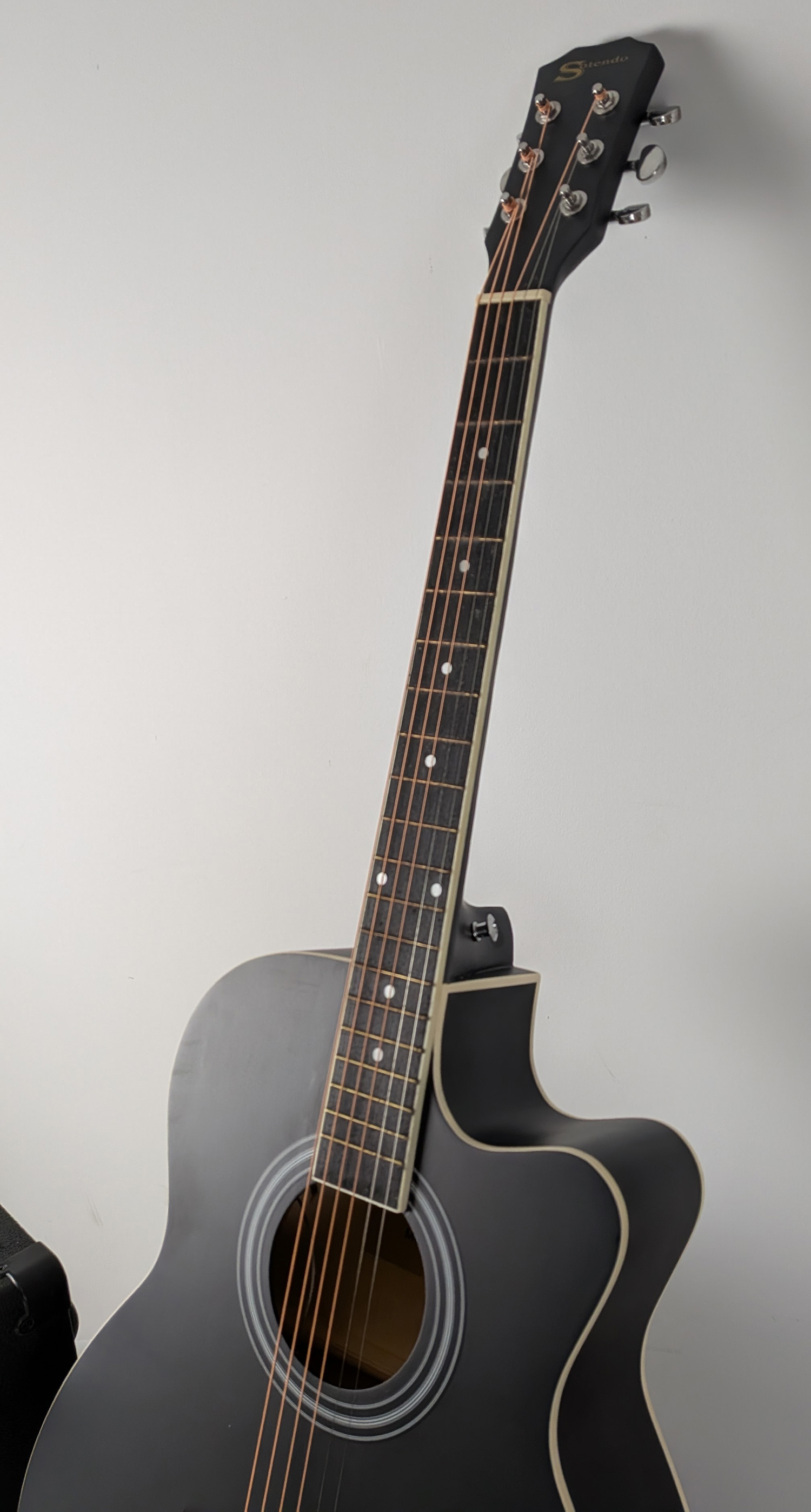 The Sotendo Electro-Acoustic Guitar kit is the perfect choice for beginners who want great sound, comfort, and style in one instrument. The guitar is matched with a compact and surprisingly powerful amplifier giving that extra sound boost and tone control when you need it. With its full-size cutaway design, the guitar offers easy access to higher frets, making it ideal for learning chords, scales, and solos. The elegant black matt finish gives it a sleek, modern look that stands out without being flashy.