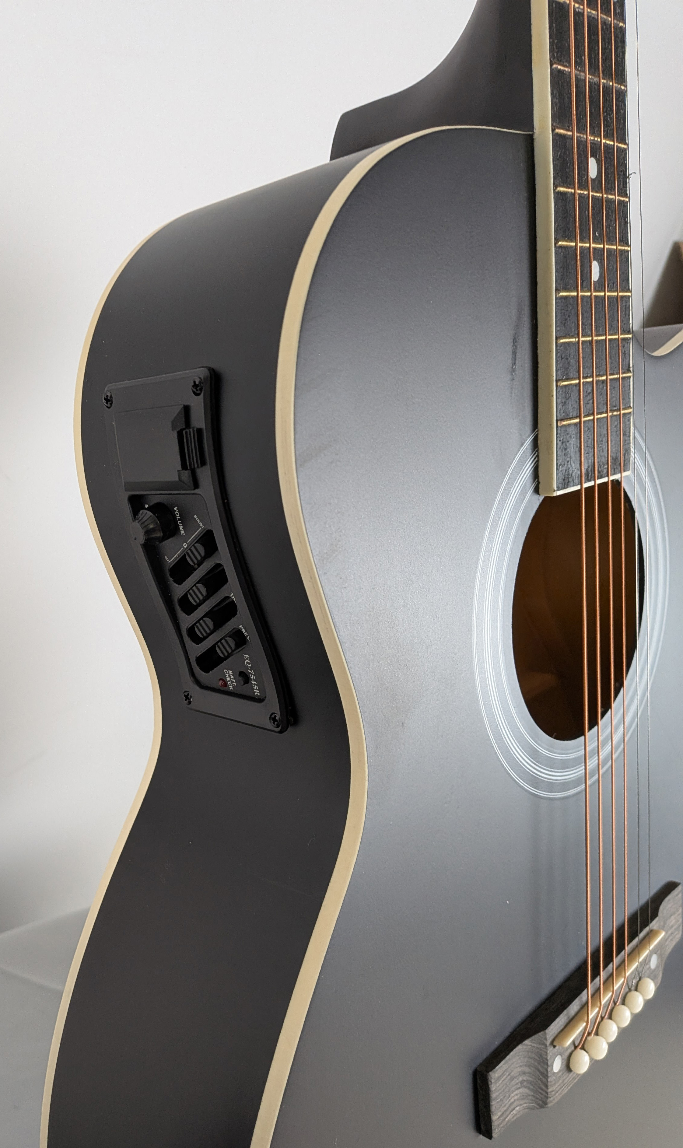 This guitar features a high-quality built-in preamp with Bass, Mid, Treble, Presence, and Volume controls, allowing you to easily shape your tone for any playing style. Play it unplugged for its warm, natural acoustic sound, or plug it in for clear, powerful amplification during performances or practice sessions.