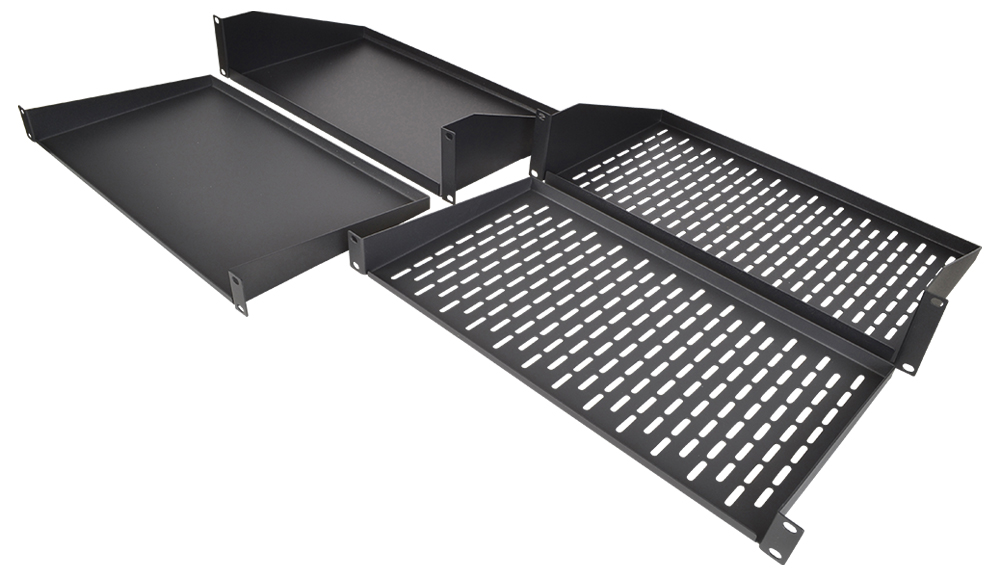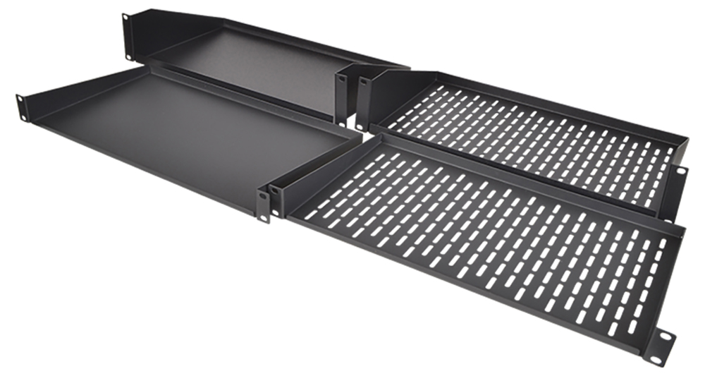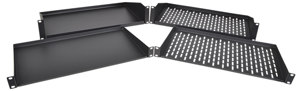 Terralec's metal vented rack shelves are made to seamlessly integrate into flight cases and metal data racks, providing adaptable solutions for equipment mounting needs.