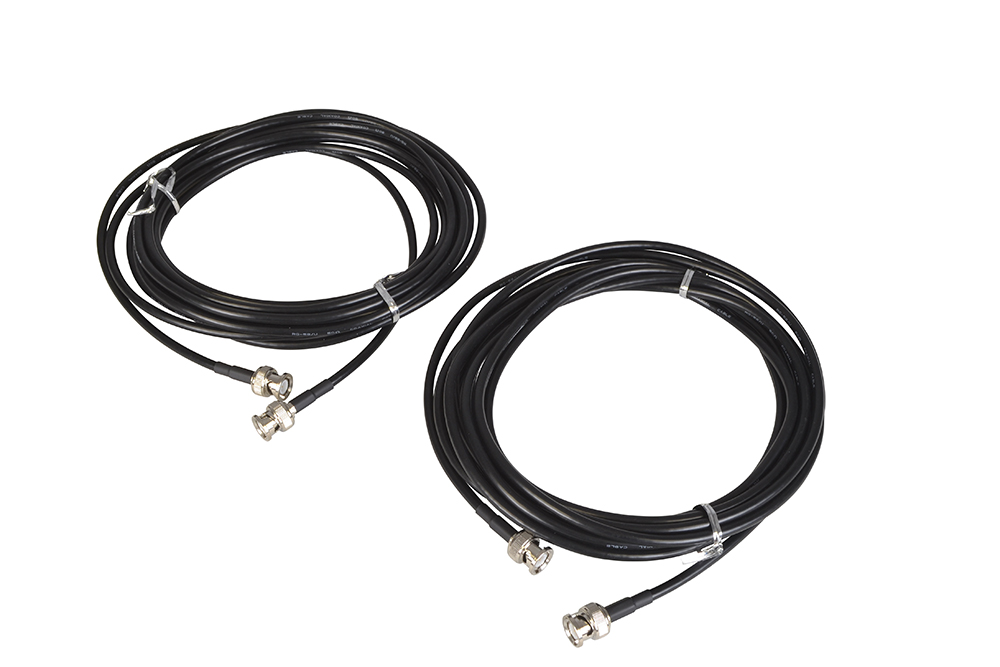 The splitter comes supplied with a 13A UK power supply unit (12V DC, 5A), four 0.2m DC link cables, ten 0.5m BNC cables, and two 5.0m BNC cables.